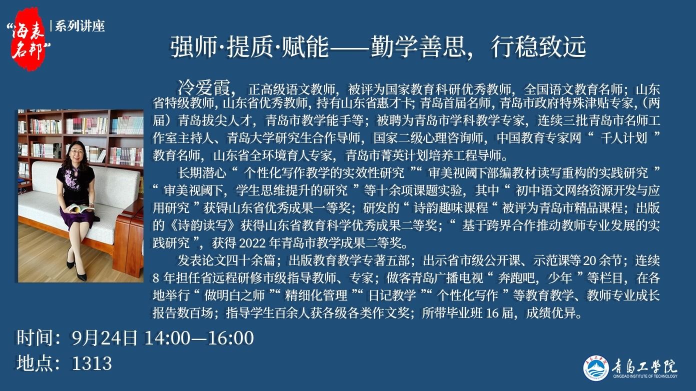 “海表名邦”系列讲座:冷爱霞《强师·提质·赋能——勤学善思,行稳致远》
