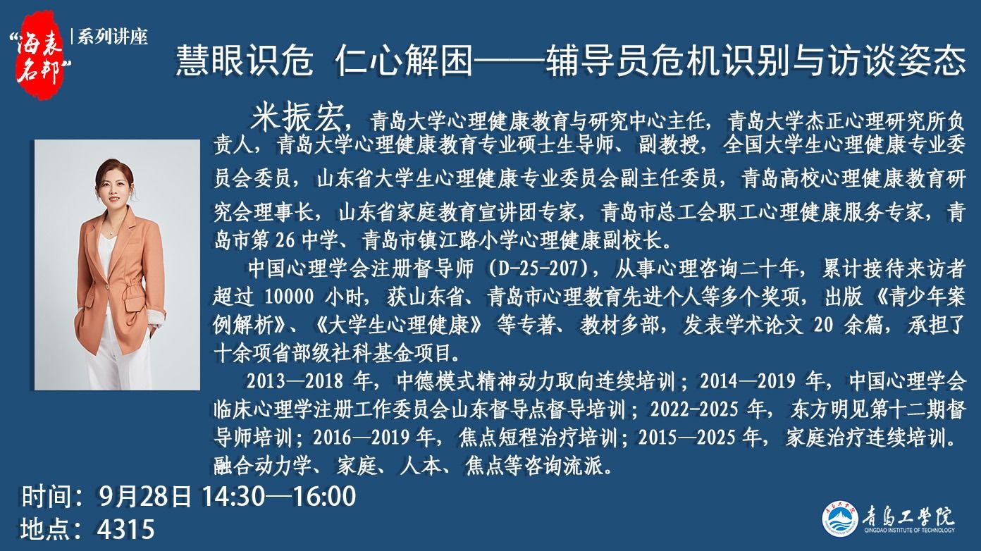 “海表名邦”系列讲座:米振宏《慧眼识危 仁心解困——辅导员危机识别与...