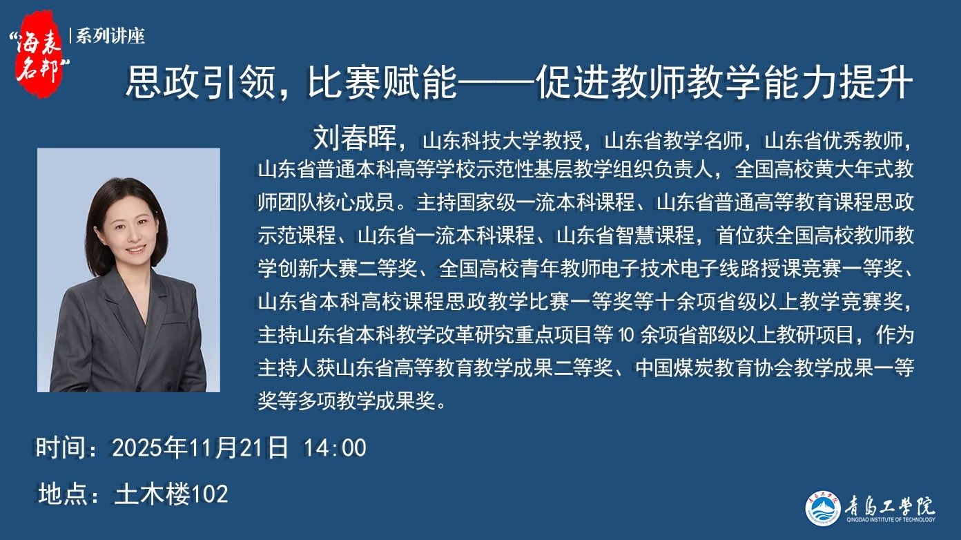 “海表名邦”系列讲座:刘春晖《思政引领,比赛赋能——促进教师教学能...