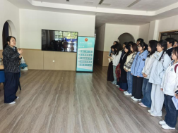 实习伊始,青岛润禾儿童发育健康管理中心校长崔佳,为同学们讲解了自闭症儿童的基本特点以及沟通细节,如避免直接眼神压迫、使用简短清晰的指令等,让同学们将沟通技巧转化为真实、细腻的服务细节。