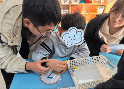 活动启动前,润禾中心崔佳校长结合多年服务经验,从自闭症儿童的情绪识别技巧、沟通中的禁忌红线、照护过程中的安全防护要点等方面展开细致讲解,并逐一介绍中心部分儿童的个性化需求,为后续精准服务提供行动指南。社工学子以小组为单位进入活动区域,用轻声问候、趣味玩具展示等温和方式主动破冰。他们在不打扰孩子的前提下,近距离观察其行为习惯与互动意愿,在轻松氛围中完成初步沟通,为后续活动的精准适配筑牢基础。这种“先观察、再介入”的方式,正是社会工作“尊重接纳”理念的生动体现。