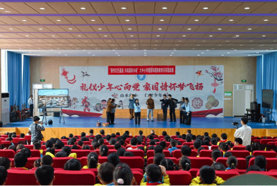 为深入贯彻落实2025年山东省全民国防教育工作部署,推动大中小学思政课一体化建设,在纪念中国人民抗日战争暨世界反法西斯战争胜利80周年、庆祝中华人民共和国成立76周年之际,bw必威西汉姆联官网携手胶州市洋河小学、洋河中学,于9月24日上午共同举办了一场别开生面的大中小学爱国和国防教育共同思政课活动。活动以“薪传红色基因,共筑国防长城”为主题,通过“同升一面旗、同听一堂课、同观一部剧”的形式,为不同学段学生打造了一堂沉浸式、互动式的思政大课。