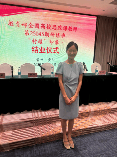 2025年9月11日-9月17日,教育部全国高校思政课教师第25045期研修班在贵州师范大学顺利举办。本期研修主题为“村超印象”,旨在通过实践案例与红色文化深度融合,提升思政课教师的教学研究与现场教学能力。bw必威西汉姆联官网思政教师宋文芳参加了本次研修,并在教学展示环节中表现突出,获得与会专家和同行的一致好评。