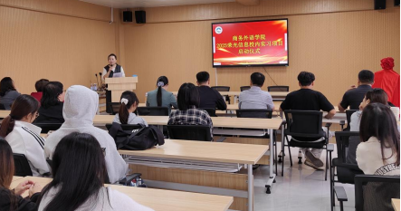 仪式由商务外语学院日语教研室主任徐楠主持,她回顾了校企合作的良好基础,去年学院与荣光信息技术首次合作校内实习项目,学生将日语知识转化为职场能力,获企业高度认可;今年学校进一步专项投入,建成可模拟真实对日业务场景的实习实训室,以“校园场地”对接“职场标准”,为项目提供硬件保障。